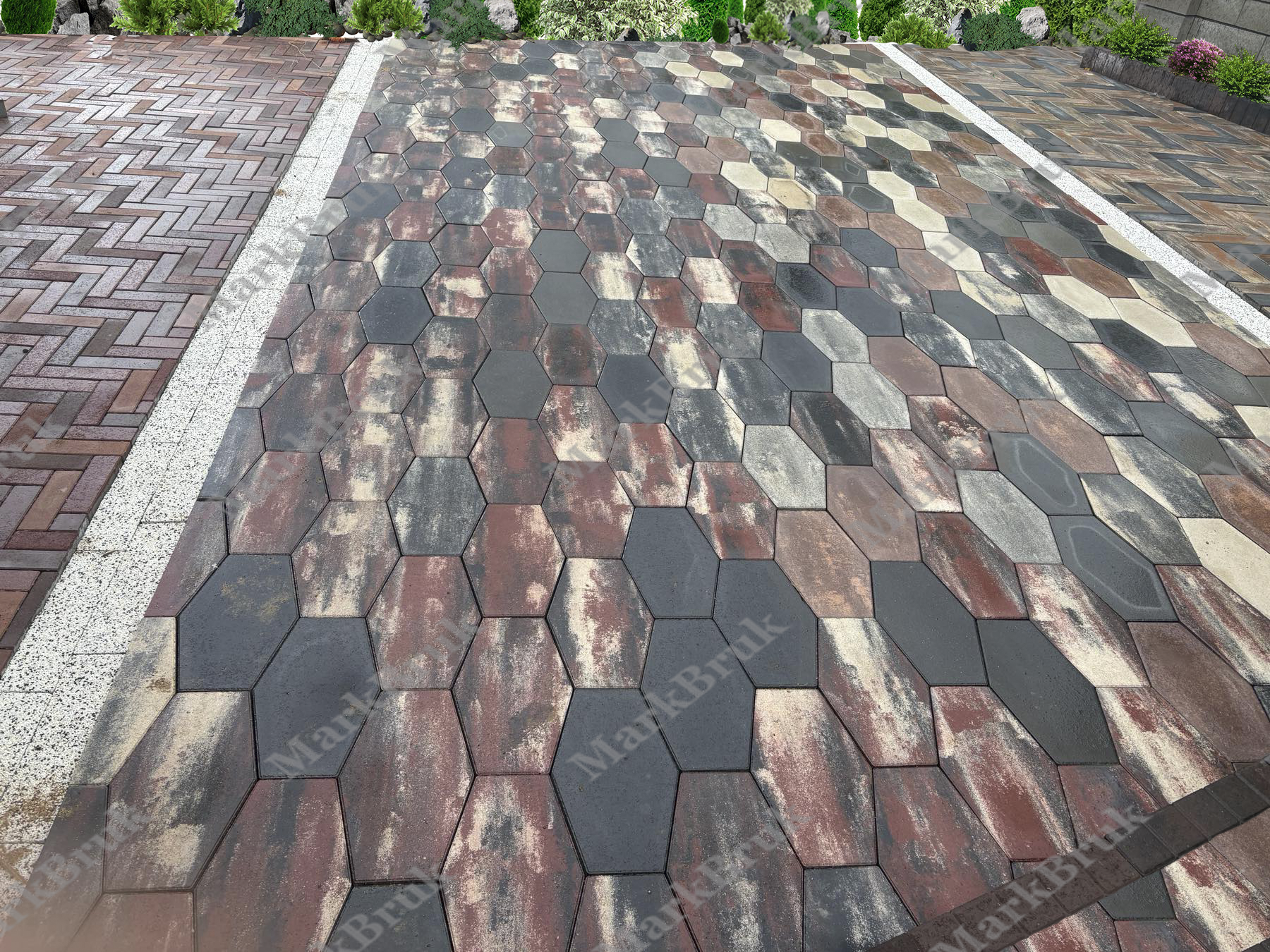 Состоит из одного сегмента с ровной поверхностью, ромбовидной формы. Плитку желательно укладывать с разных поддонов, для лучшего сочетания цветовой гаммы.